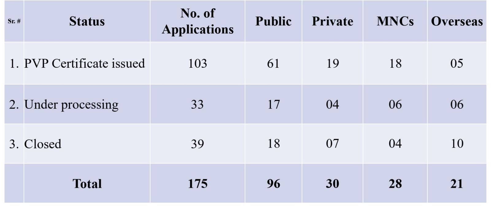 Status of PVP Applications as on 11.12.2025