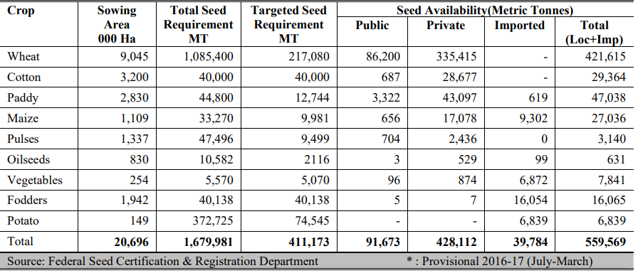 Area, Seed Requirement and Seed Availability During