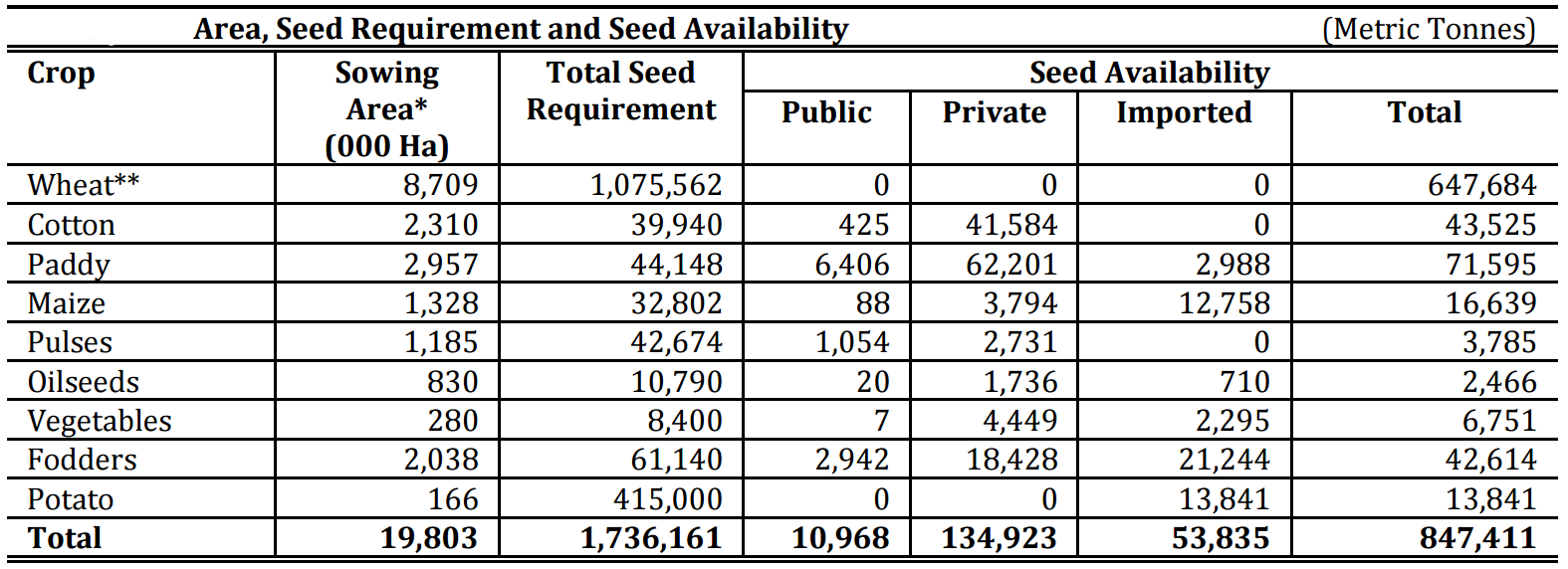 Area, Seed Requirement and Seed Availability During